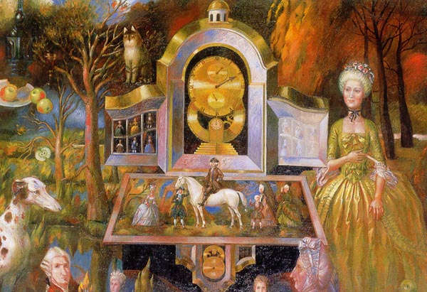 real and theatrical simultaneously. And as a symbol of time - clock appears. They are in