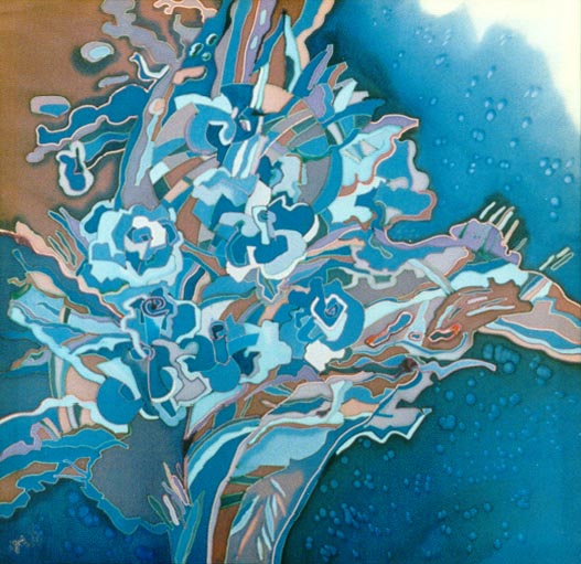 | | | Голубые розы. Шёлк, батик, 90х90, 1998. | |