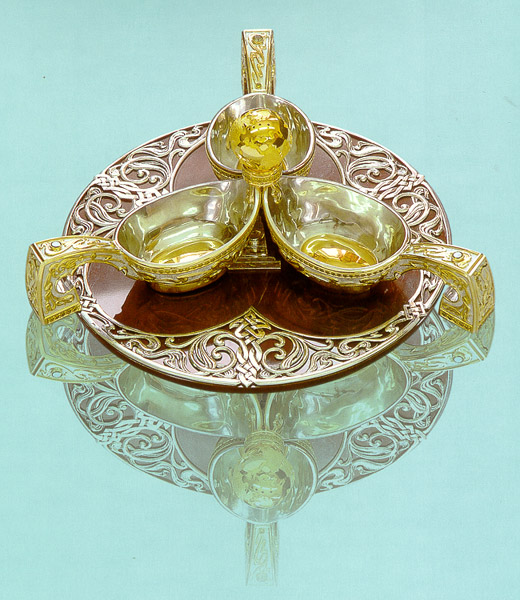 | | | Souvenir "Russian tradition". Silver, gold, demantoides, rub, ies, ural's jasper. | |