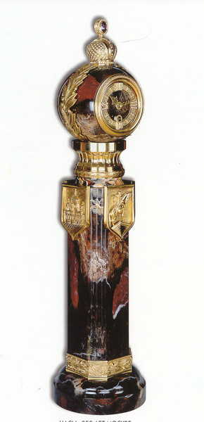 | | | Clocks "850 YEARS TO MOSCOW". Orsk jasper, bronze, fianites, nat. amethysts. | |