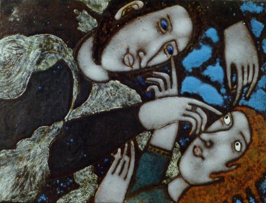 | | | Girl with bird. 1998. Copper, enamels. | |
