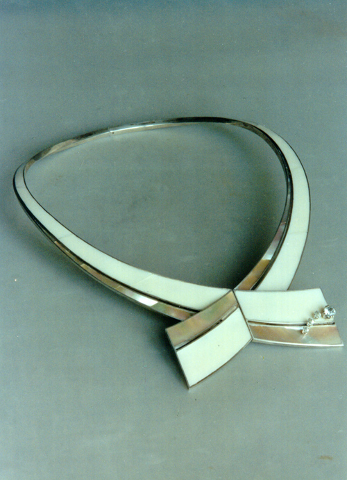 | | | Suit "Mystery of live forms". 1991. Silver, aquamarine, mother-of pearle, bone. | |