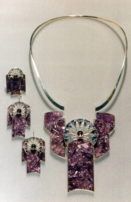 | | | Necklace from suit "Polychromy". 1988. Silver, citrines, amethyst. | |