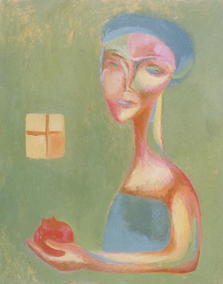 | | | Girl with a pomegranate. 53,5õ60. MDF, oil.1999. | |