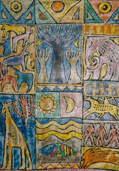 the artist’s remake of the paleolith age African rock carvings. “Paganism” - appeal