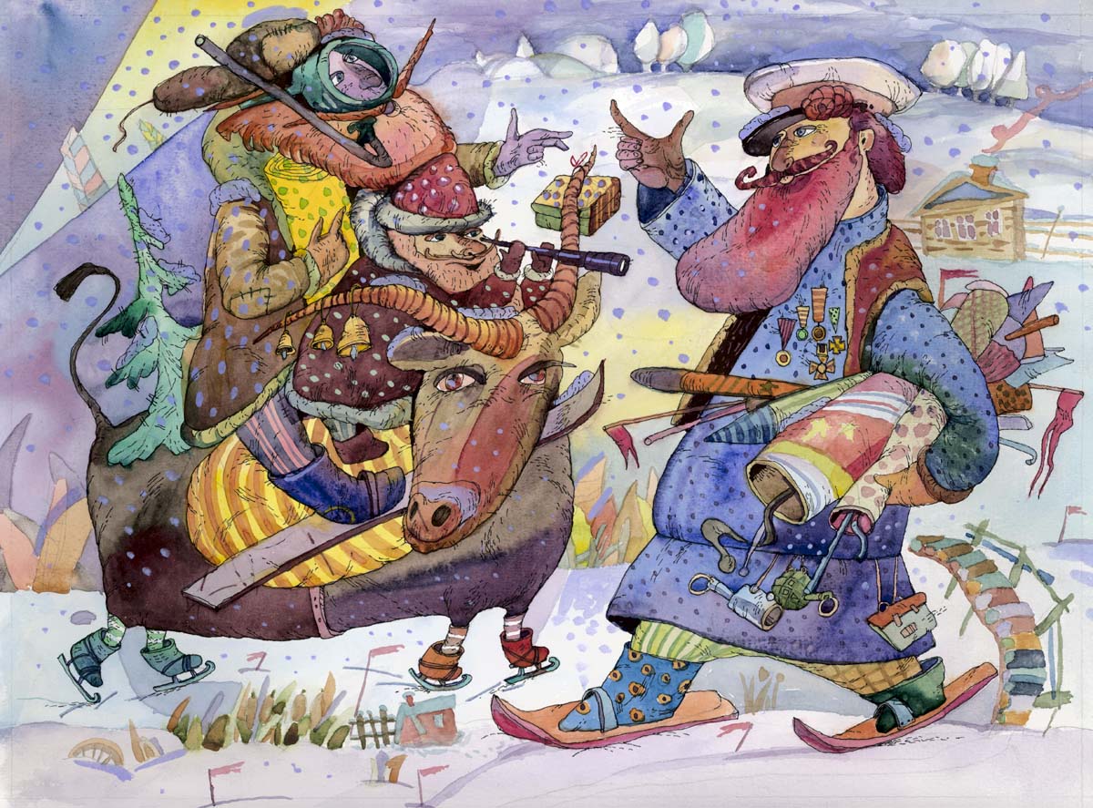 | | | Серия "Русские потешки". Бум., акварель, тушь, 1997г. | |