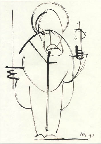 | | | Self portrait. Paper, China ink, 31x19, 1996. Author's property | |
