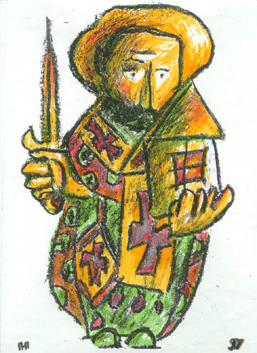 | | | "St Nicolas of Mozhaisk" Series. Paper, crayon, wax pencil. 31*19, 1997. Author's property | |