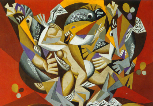 Triptych from series "Middle-ages minstrels". "Lesson of singing", "Hypocrisy", "Burial of empty armour". 1996.