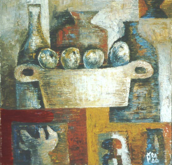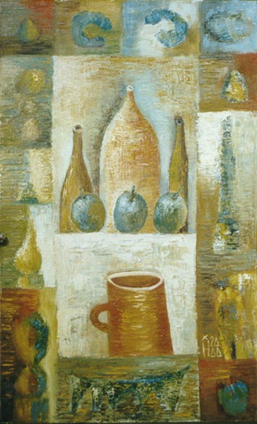 | | | Три бутылки, четыре яблока. (60х60). 2000. Холст, масло. | |