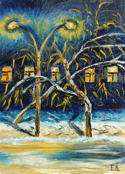 | | | "Night Streetlights" 2000 cardboard, oil 25x35 | |
